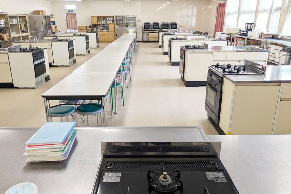 主にライフデザインコースの専門科目の実習を行います。食物調理検定などのために練習が繰り返され、1級合格者が毎年たくさん出ています。